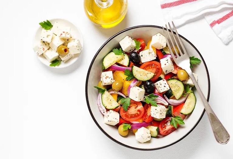 vegetarisch (o.s. Hackfleisch), Salat und Sauce