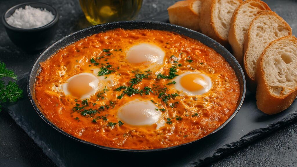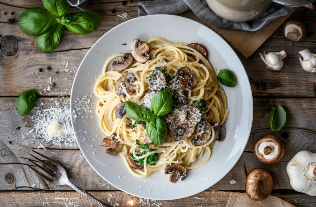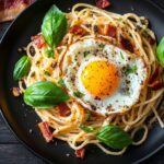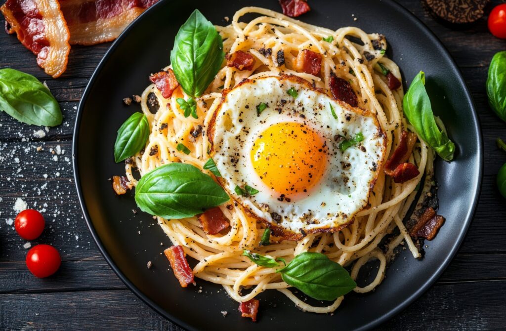 mit Schinken, Ei, Parmesan und Sahnesoße