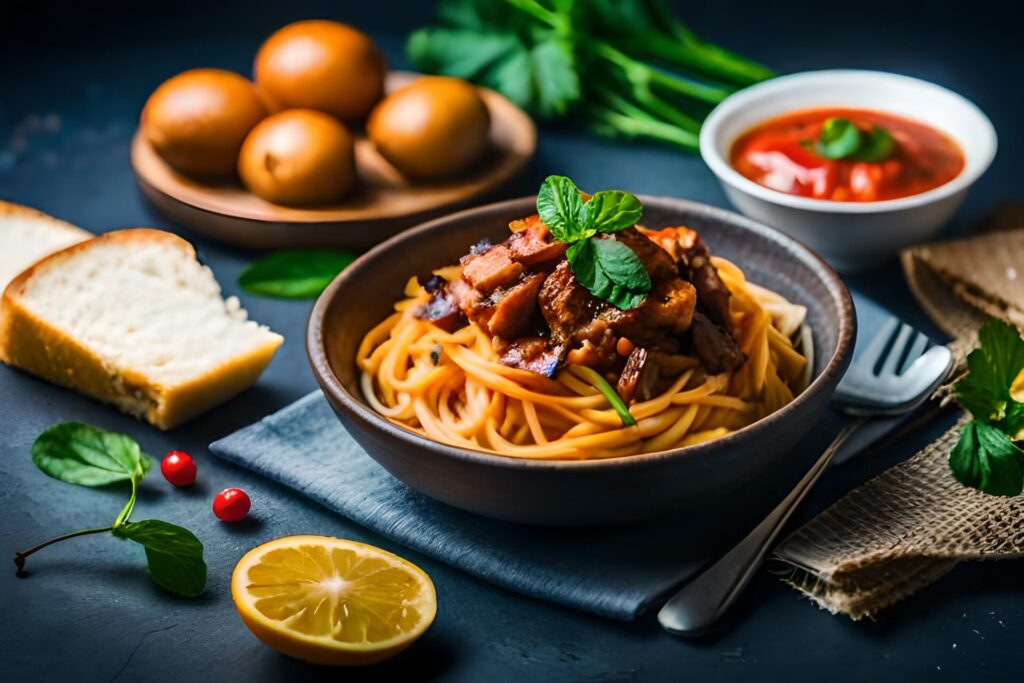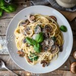 mit Dönerfleisch, Spaghetti in Sahnesoße